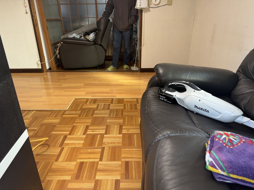 長らく待っていただき床の重ね張り工事。