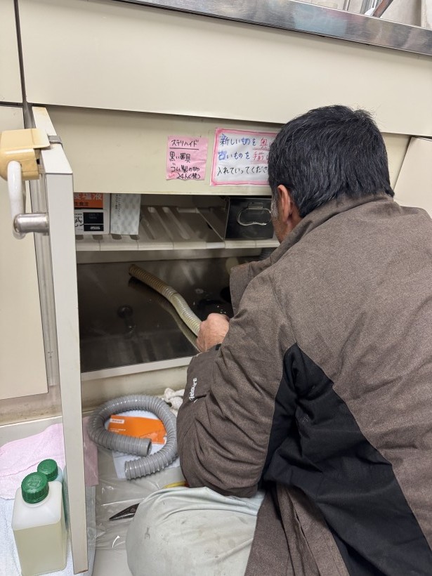 シンク下の排水ホースが経年劣化で水漏れ。