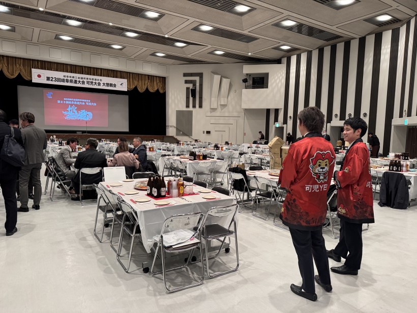 青年部の県連大会。無責任なOBは式典までのどを潤し腹ごしらえから始まる。