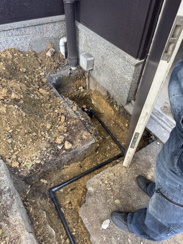 ゴルフ場のクローズの日を利用し、近々スタートするトイレ工事に伴う給水工事。